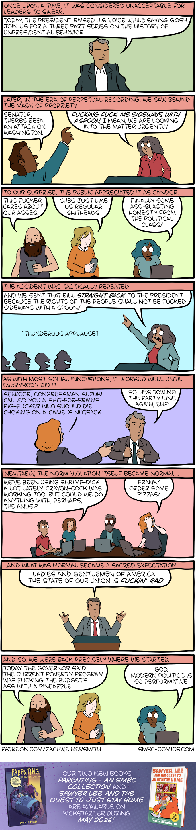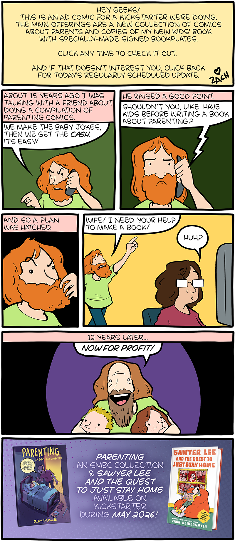 The comics for the Parenting - An SMBC Collection book have been carefully selected by Zach and Kelly from the entire run of Saturday Morning Breakfast Cereal and polished up for print!